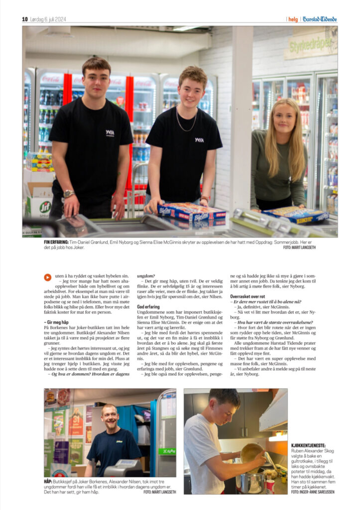Ungdommene vil jobbe fra kl. 10 – 14, mandag til fredag fra 22. juni – 3. juli. Resten av arbeidsdagen skal de delta på forskjellige aktiviteter som gir dem større grad av livsmestring og bo-evne, slik at de står bedre rustet til å flytte for seg selv for skole og jobb.